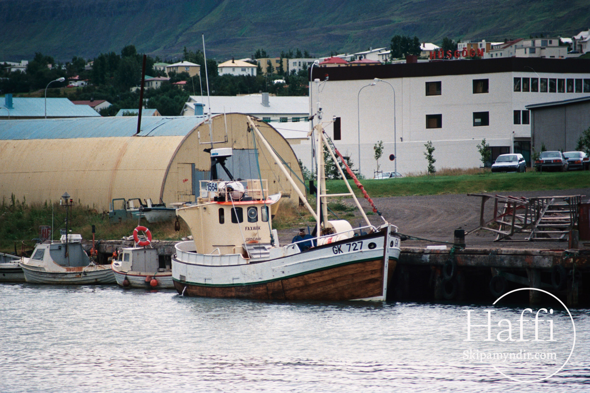 Faxavík GK 727 liggur hér við bryggju á Akureyri um árið og hygg ég að þarna hafi verið nýbúið að kaupa bátinn á Hofsós þar sem hann fékk nafnið Berghildur SK 137.