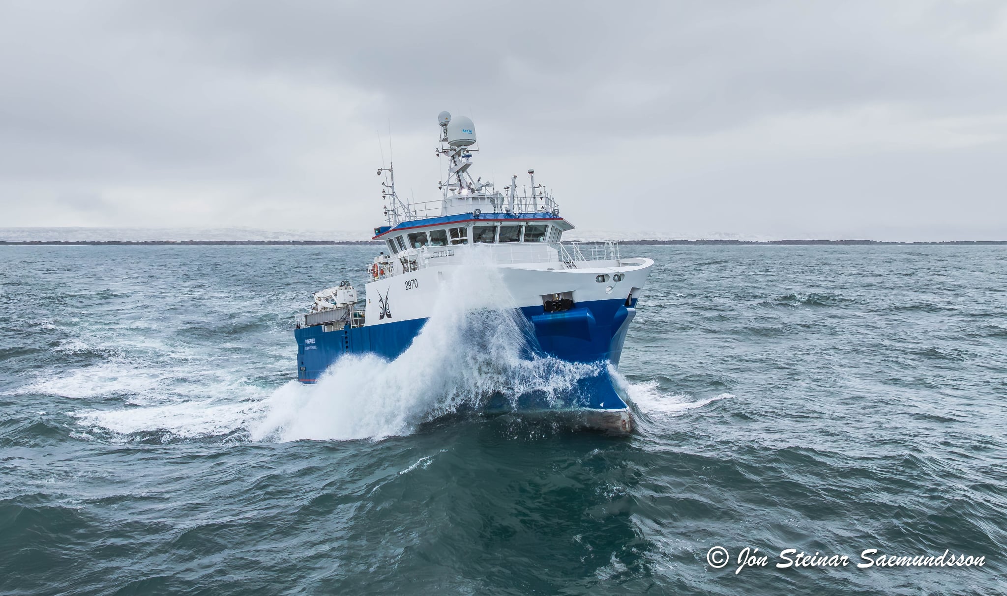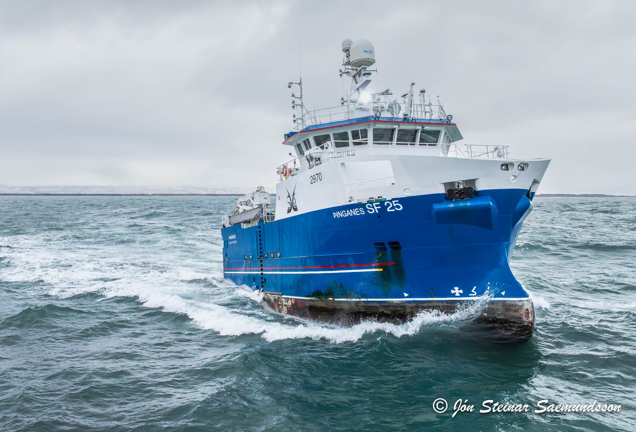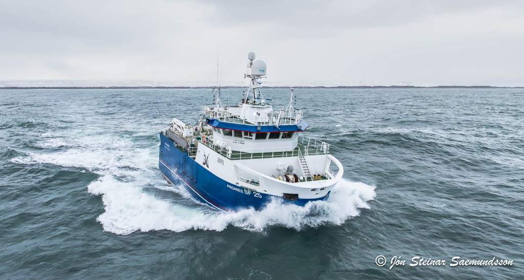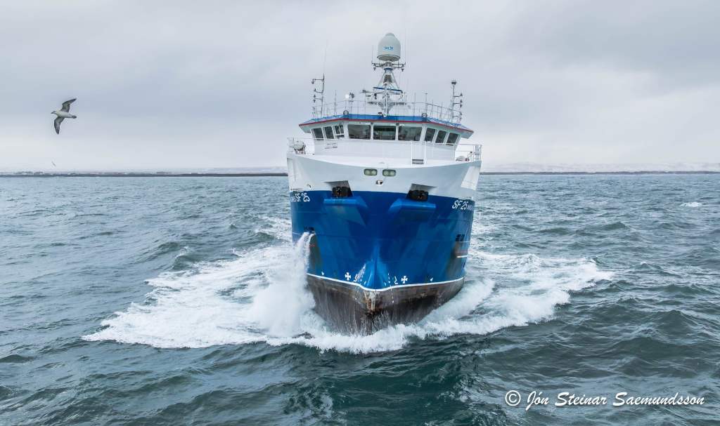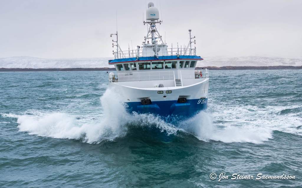 Jón Steinar tók þessar myndir í gær en þær sýna Þinganes SF 25 halda á miðin eftir löndun í Þorlákshöfn.
