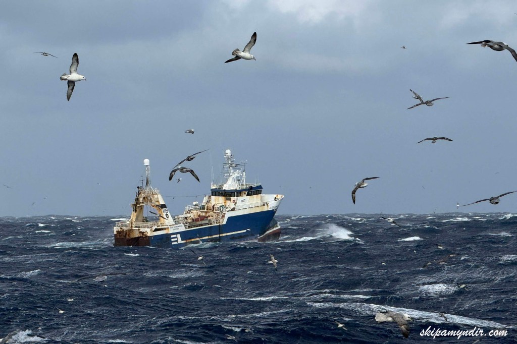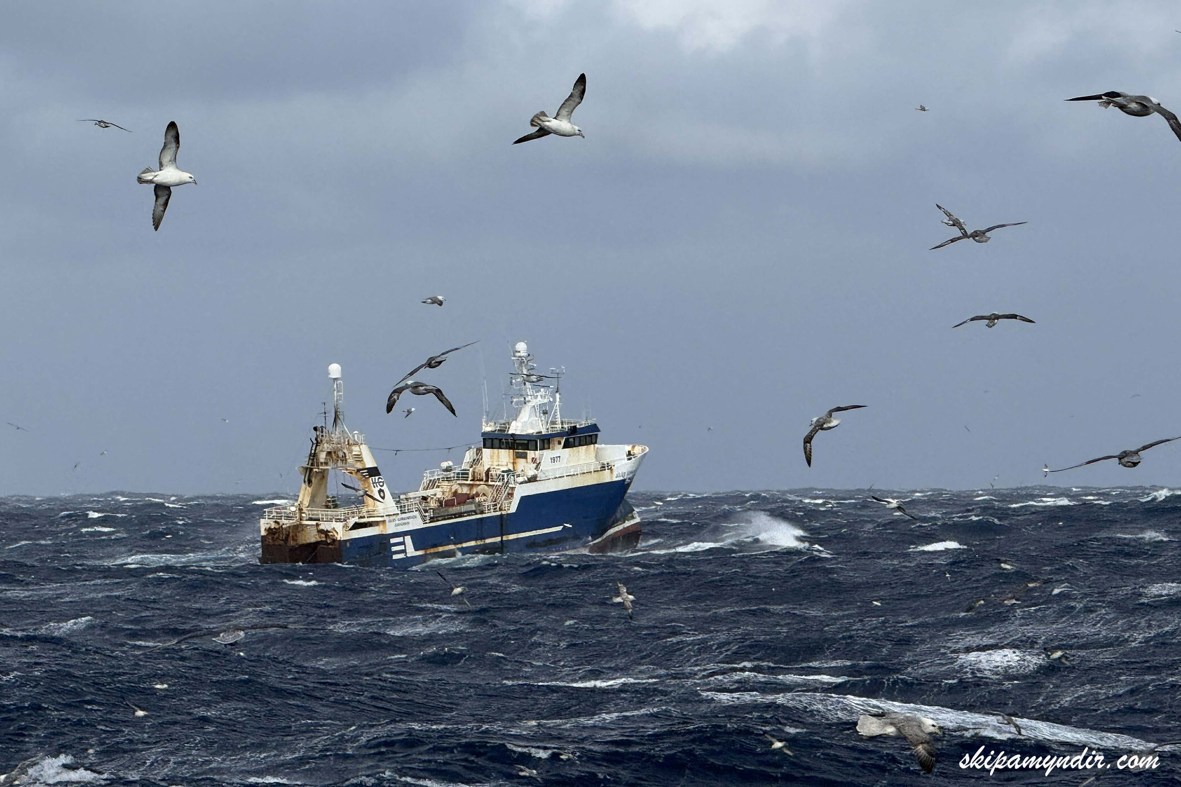Sigmar Ingólfsson skipverji á Baldvin Njálssyni GK 400 tók þessa mynd í gær af Ísafjarðartogaranum Júlíusi Geirmundssyni ÍS 270 á toginu.