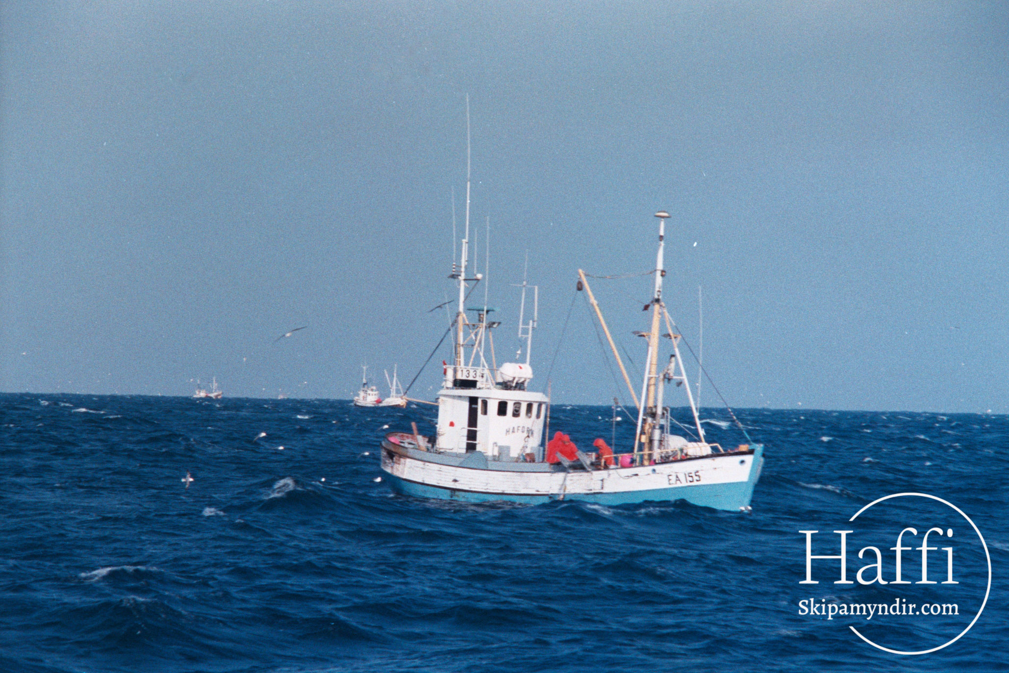 Haförn EA 155 frá Hrísey er hér að draga netin á Breiðafirði um árið, 1982 sennilega, og í fjarska má sjá Auðbjörgu EA 22 og Björgu Jónsdóttur ÞH 321.
