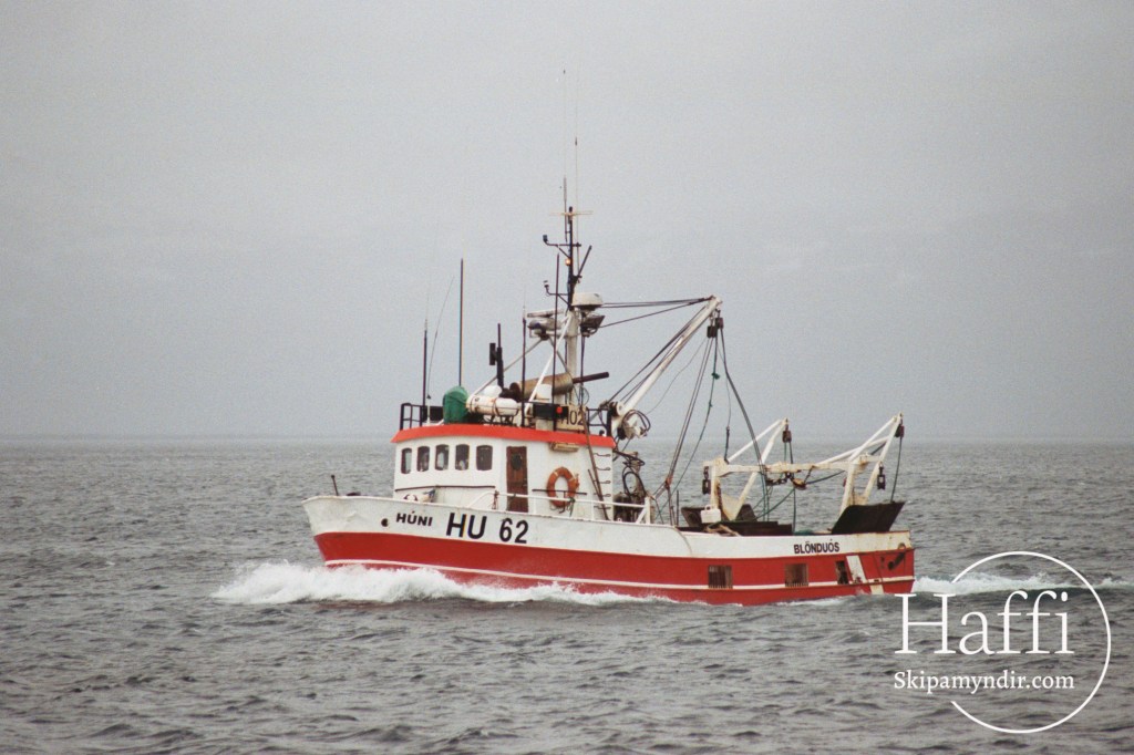 Rækjubáturinn Húni HU 62 frá Blönduósi kemur hér til löndunar á Húsavík sumarið 1993 sem var að mig minnir einstaklega leiðinlegt hvað veðurfar varðaði.