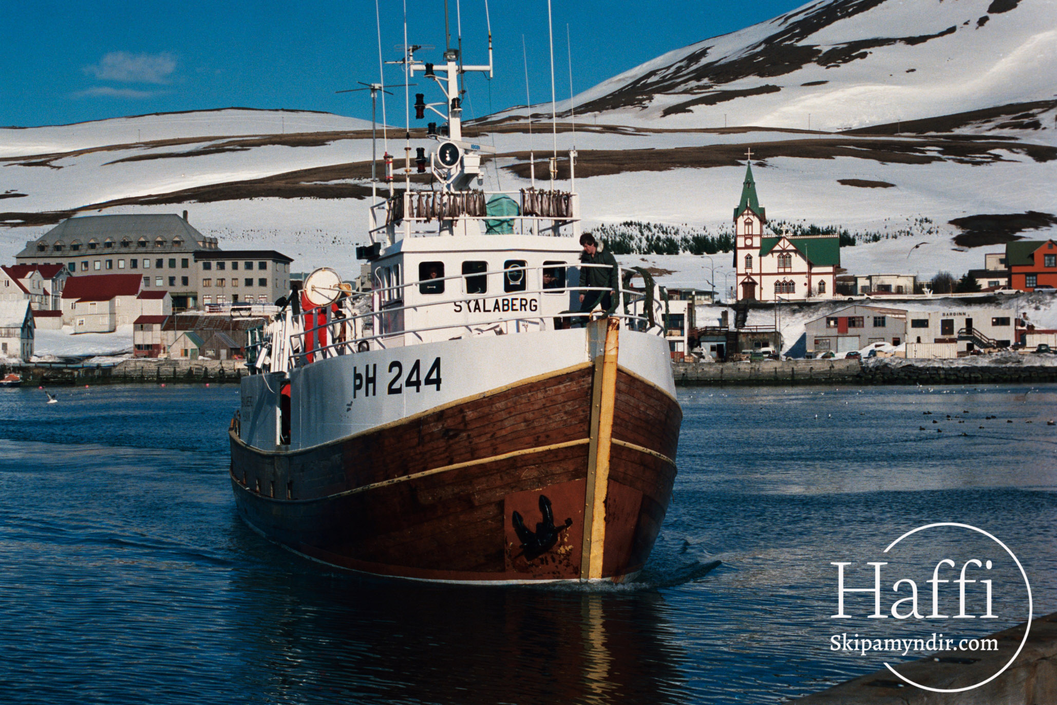 Skálaberg ÞH 244 kemur hér að bryggju um árið en Aðalgeir og Egil Olgeirssynir keyptu bátinn frá Ísafirði haustið 1985 og gerðu út til ársins 1990.