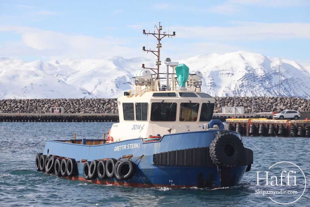 Dráttarbátur Skagafjarðarhafna, Grettir sterki, kom til Húsavíkur í dag og var þessi mynd tekin við það tækifæri.