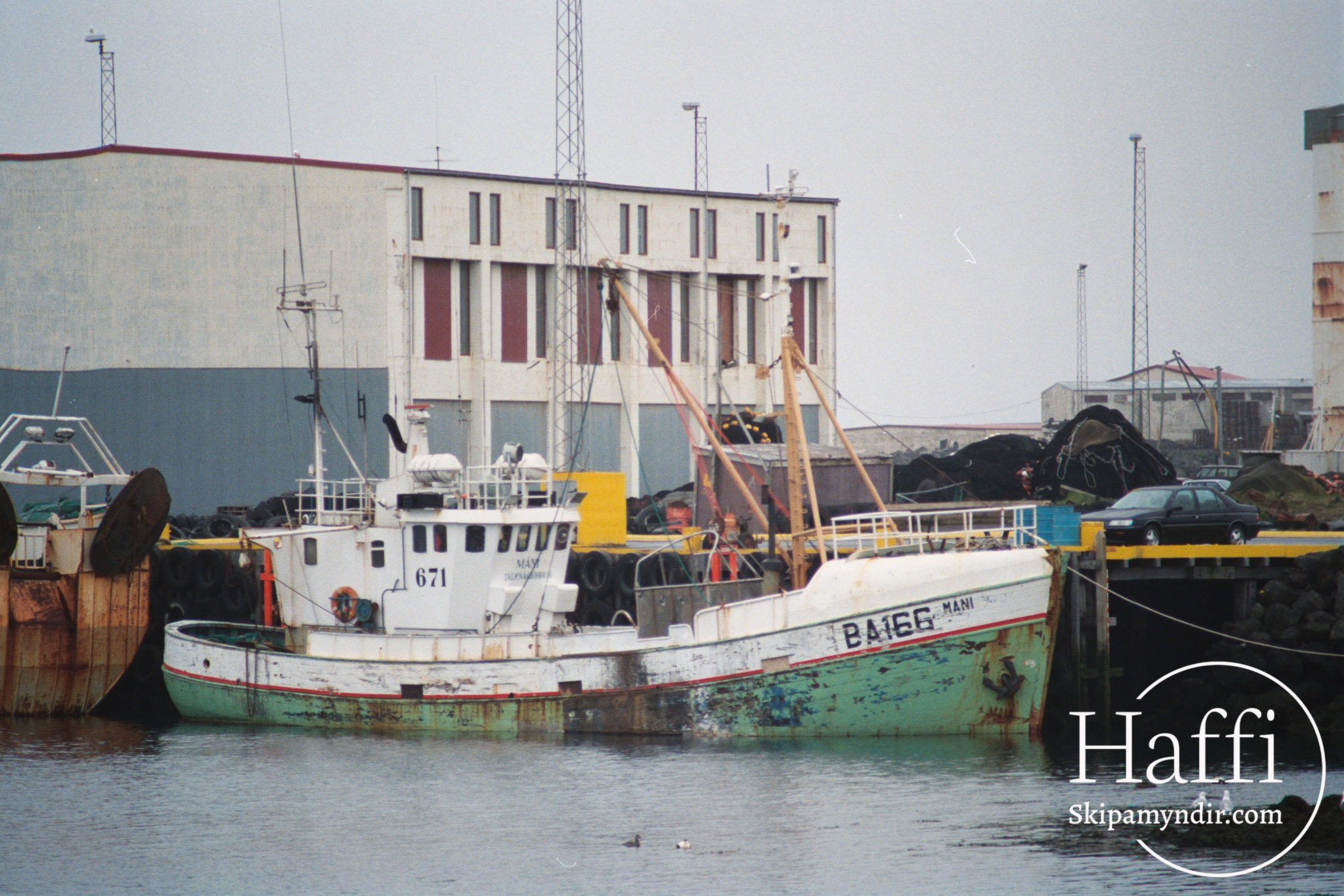 Máni BA 166 liggur hér í Grindavíkurhöfn um árið en upphaflega var Máni með einkennisstafina GK og númerið 36.