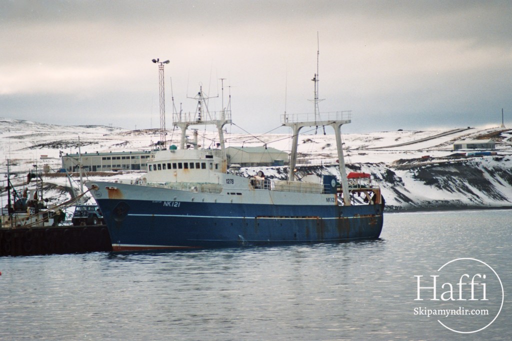 Skuttogarinn Bjartur NK 121 frá Neskaupstað liggur hér við bryggju á Húsavík um árið en hann var einn Japanstogaranna svokölluðu. Spurning hvort hann hafi verið á ralli.